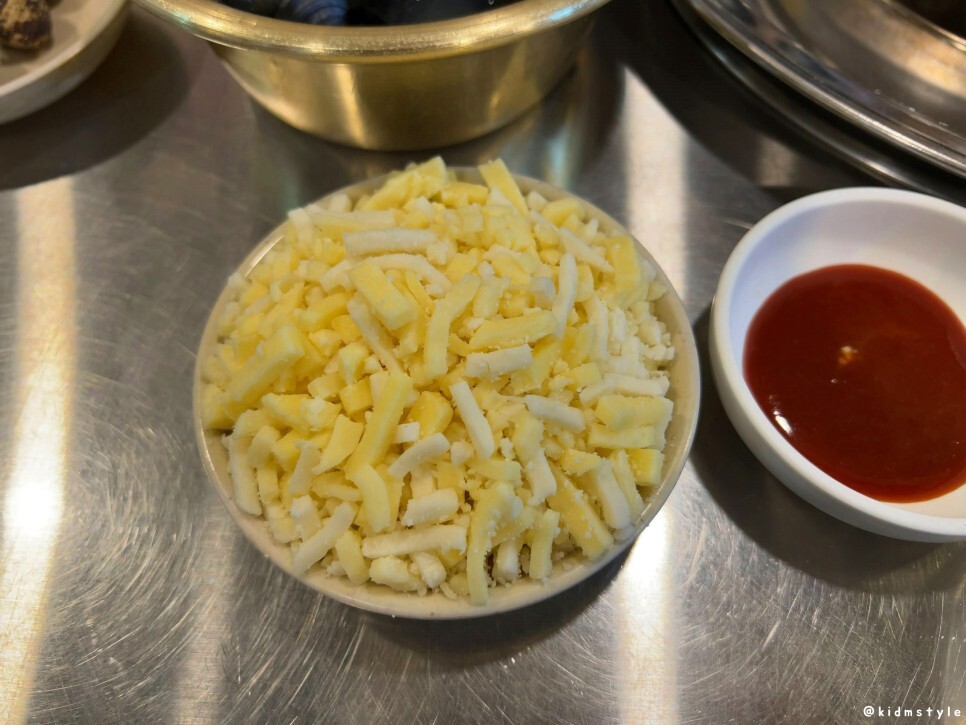 치즈는 나중에 조개구이에 올릴 토핑이다.