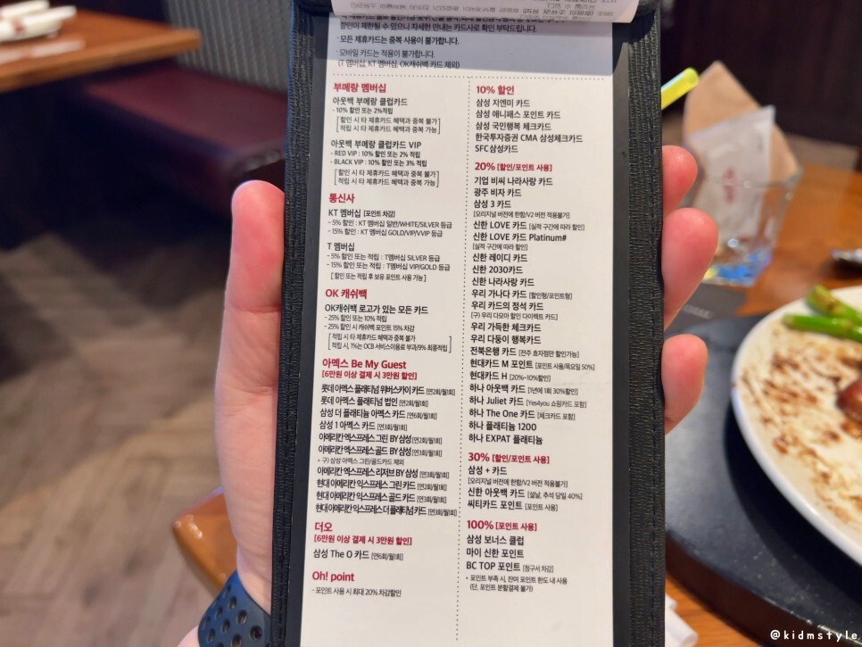 흡입 수준으로 다 먹었다. 아주 깔끔하게 비웠네. 할인되는 카드가 꽤 많아서 사진으로 남겨본다.