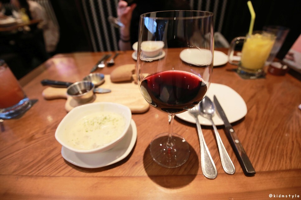 와인이 나왔다. 부드러우면서도 붉은 과일의 아로마와 모카의 부케가 조화로운 와인이라고 하는데 운전 때문에 맛을 못 본 게 아쉽다.