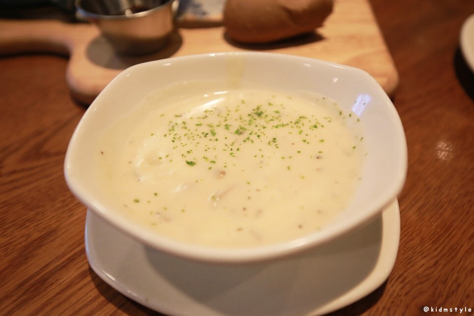 수프는 언제 먹어도 맛있다. 베이컨인지 고명도 많이 들어가 있더라. 숟가락으로 호로록 마셔본다.