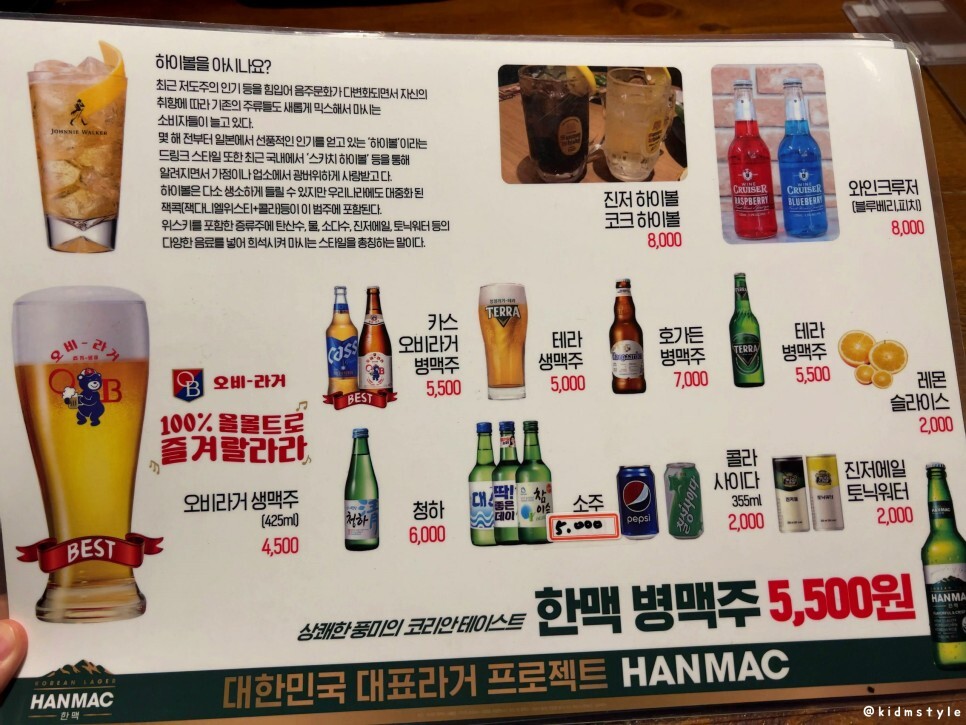 병맥주가 5,500원, 소주가 5,000원이다. 해운대 물가 비싸네. 강남 따라가나?