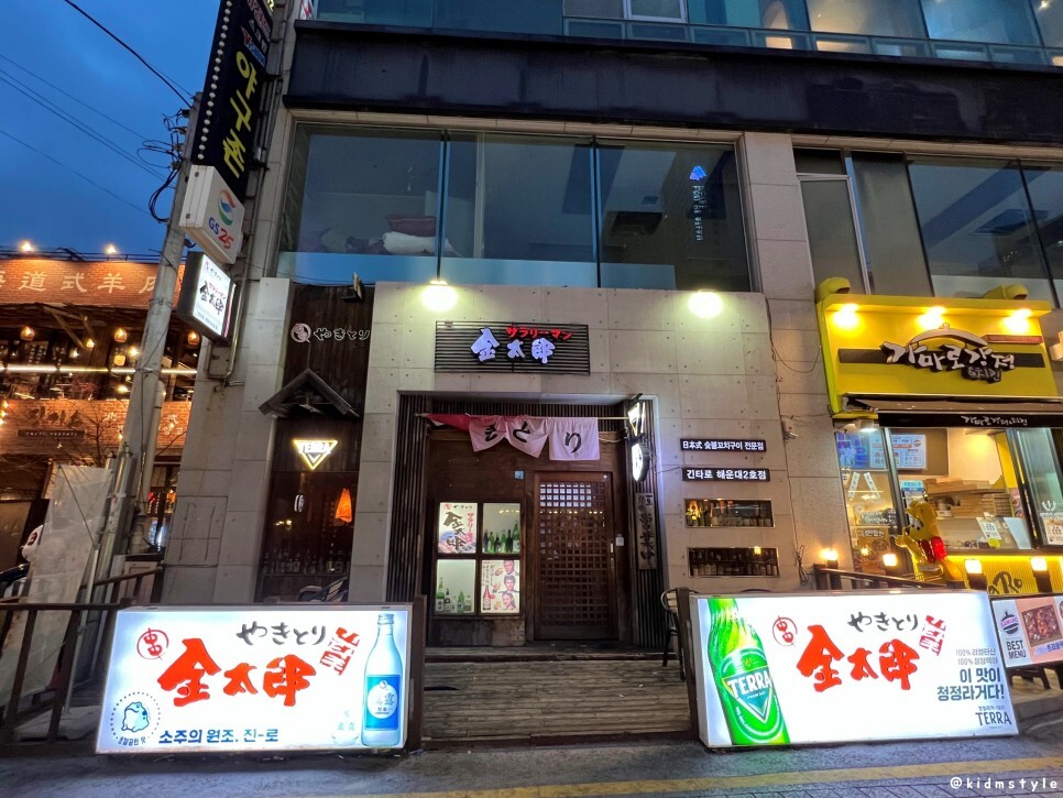 힐링을 하러 해운대에 갔다. 맛있는 저녁을 먹고 해운대 시장 구경을 하고 나니 막상 2차 갈 곳이 애매하다. 시끌벅적하고 정신없는 곳 말고 조용하게 소주 한잔할 곳을 찾아보았다. 숙소 바로 부근에 익숙한 간판이 보인다. 긴타로. 일단 가보자. 위치는 해목 바로 옆이다.