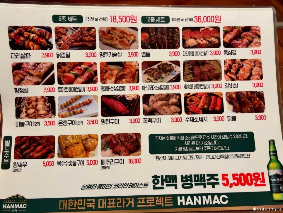 메뉴판을 하나하나 찍어본다. 3월에 찍은 거니 현재 가격 변동이 있을 수 있다. 꼬치 종류가 많네. 주문과 동시에 숯불에서 구워주므로 시간이 좀 걸릴 수 있으니 먹다가 안주가 모자라면 미리미리 주문하는 것을 추천한다. 메추리구이가 반갑다.