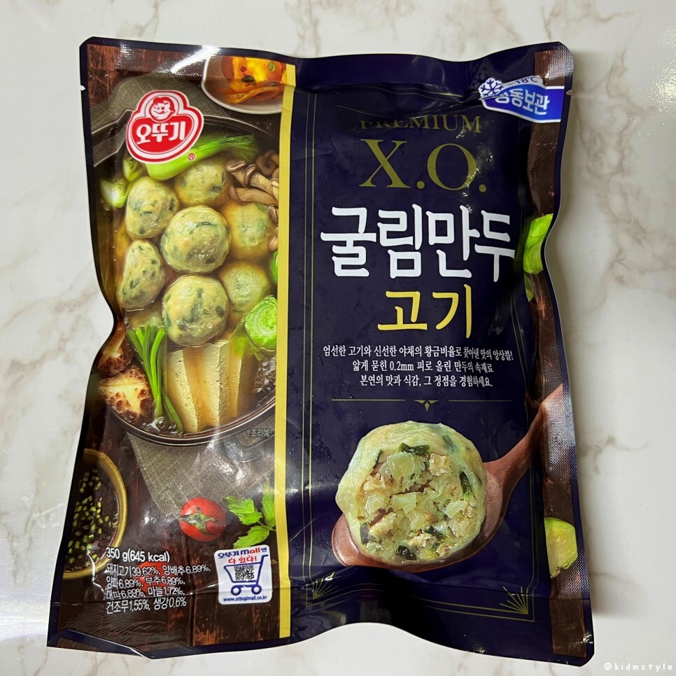 3가지 종류 중에서 하나만 소개해 본다. x.o. 굴림만두 고기 제품이다.