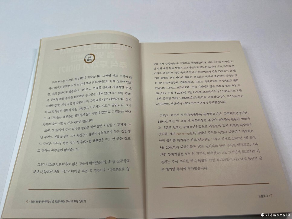 주식을 18년 동안 해온 저자의 노하우가 담겨있는 책이라고 봐도 되겠다. 본문대로 코로나19 이후로 많은 것이 바뀌었다. 나 역시 주식에 선뜻 진입을 하지 않는 이유가 코인으로 이익을 봤지만 그 위험부담이 상당하다는 것을 몸소 겪었기 때문이다.