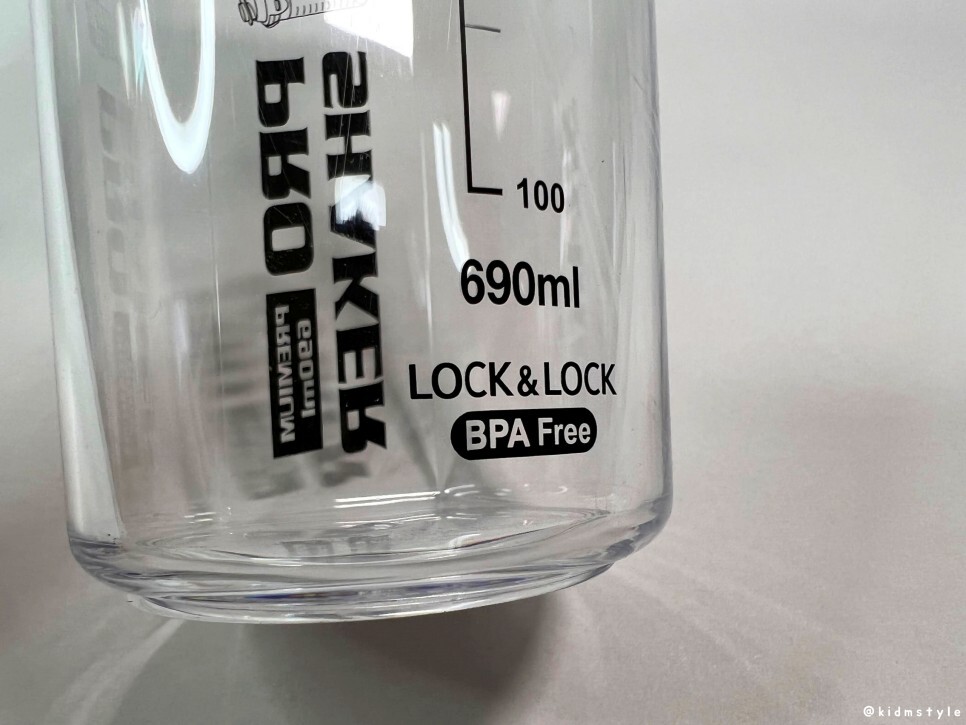BPA FREE 제품이다. 물통 등을 구입할 때 꼭 챙겨봐야 하는 부분이다. 프로쉐이커는 국내 1위 밀폐용기 제작 업체인 락앤락과 공동 개발하여 락앤락이 제조, 판매하는 프리미엄 쉐이커 브랜드이다. 실용적인 디자인과 튼튼한 내구성으로 누구나 편리하게 사용 가능한 쉐이커 제품으로 야외활동 및 실내에서도 다양하게 활용이 가능하여 인기가 많다.