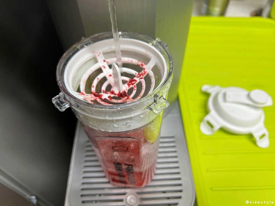 그리고 직접 써보니 뚜껑부인 원터치 캡 내부의 실리콘 패킹을 분리할 수 있고 물통 입구가 넓어서 위생적으로 세척이 가능하기 때문에 관리가 꽤 편하더라.