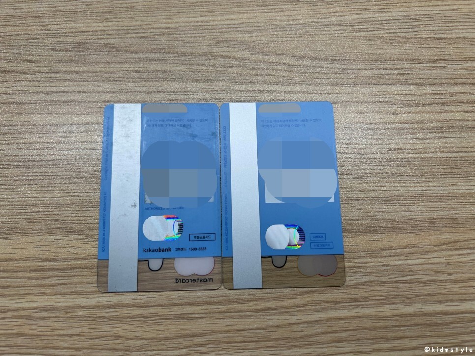 왼쪽이 기존에 사용하던 카드, 오른쪽이 새로 받은 카드이다. 큰 차이는 없고 마스터카드 문구만 사라졌다.