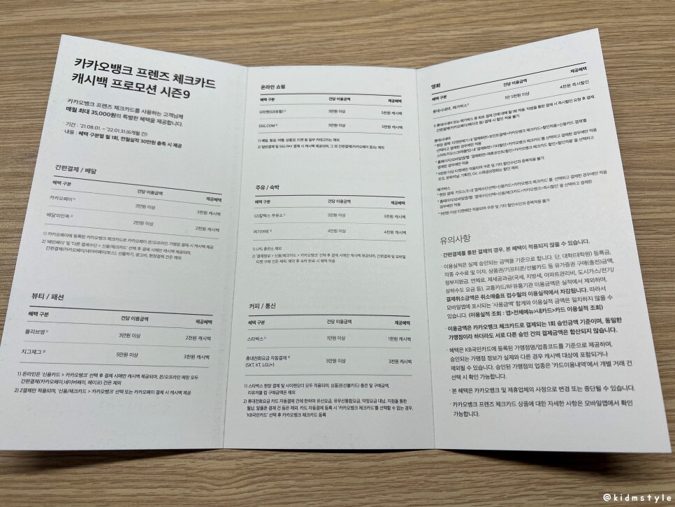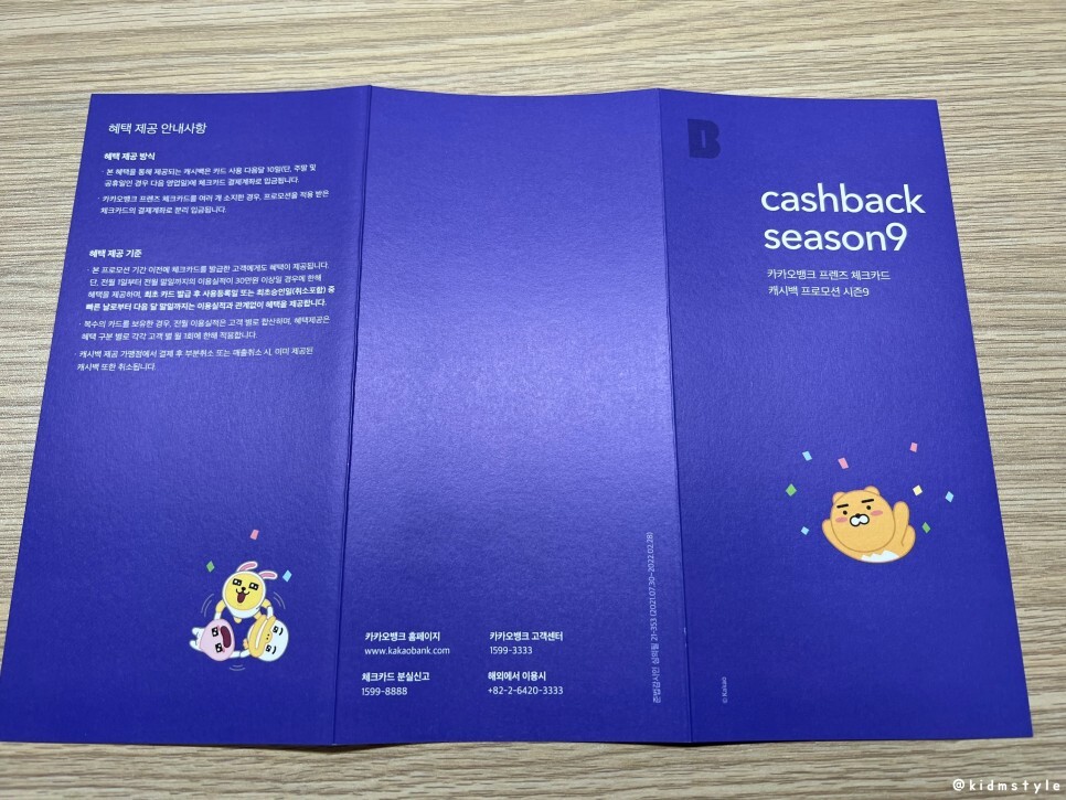 카카오뱅크 프렌즈 체크카드 캐시백 프로모션 시즌 9에 관한 설명이다. 현재는 시즌 11이다.