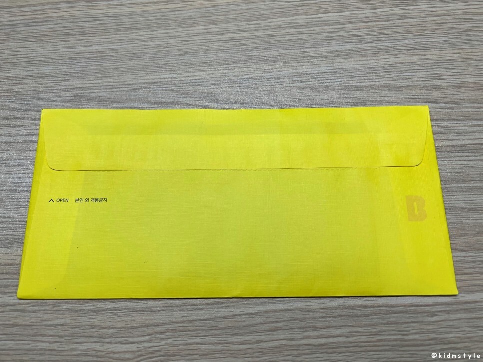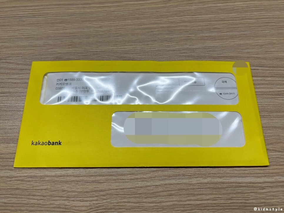 기존에 사용하던 체크카드의 유효기한이 다 돼서 새로운 카드를 발급 요청하였다. 카드 배송 직원을 통해 전달받았으며 겉봉투에는 카카오톡의 시그니처 색깔인 노란색이 강렬한 첫인상을 보여주고 있다.
