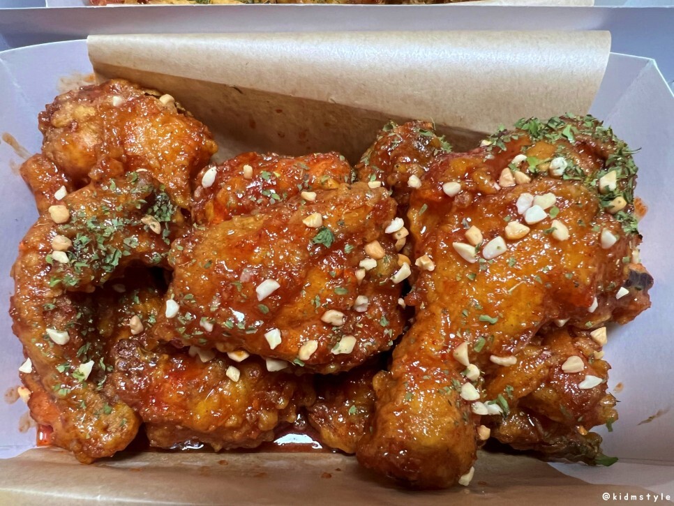 양념치킨 역시 군침이 돈다. 단맛이 과한 양념이 아닌 적당하게 누구나 맛있게 즐길 수 있는 양념치킨이다.