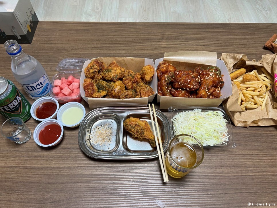 밖에서 치킨을 먹을 때는 소주, 집에서 치킨을 먹을 때는 소맥으로 맛본다. 대선과 테라가 딱 좋다.