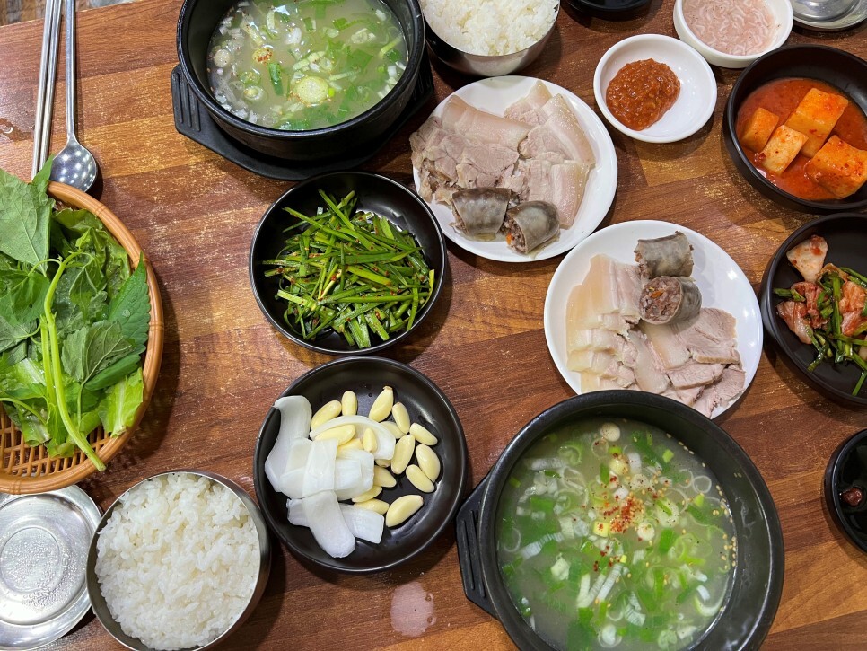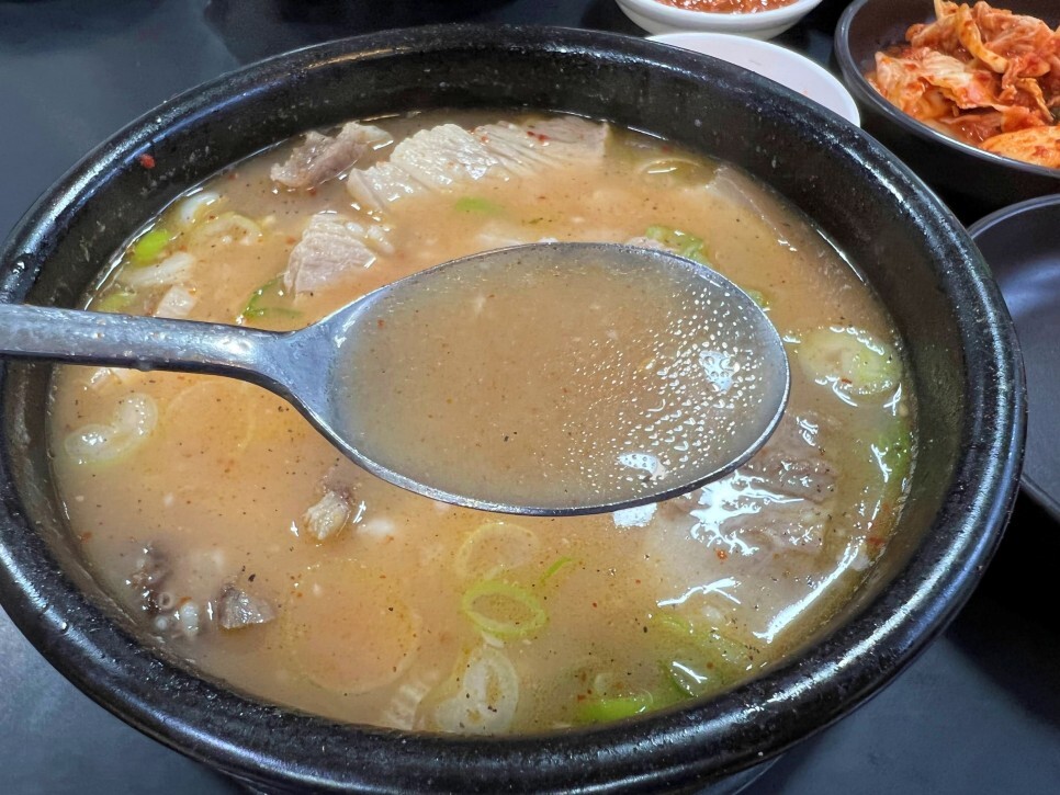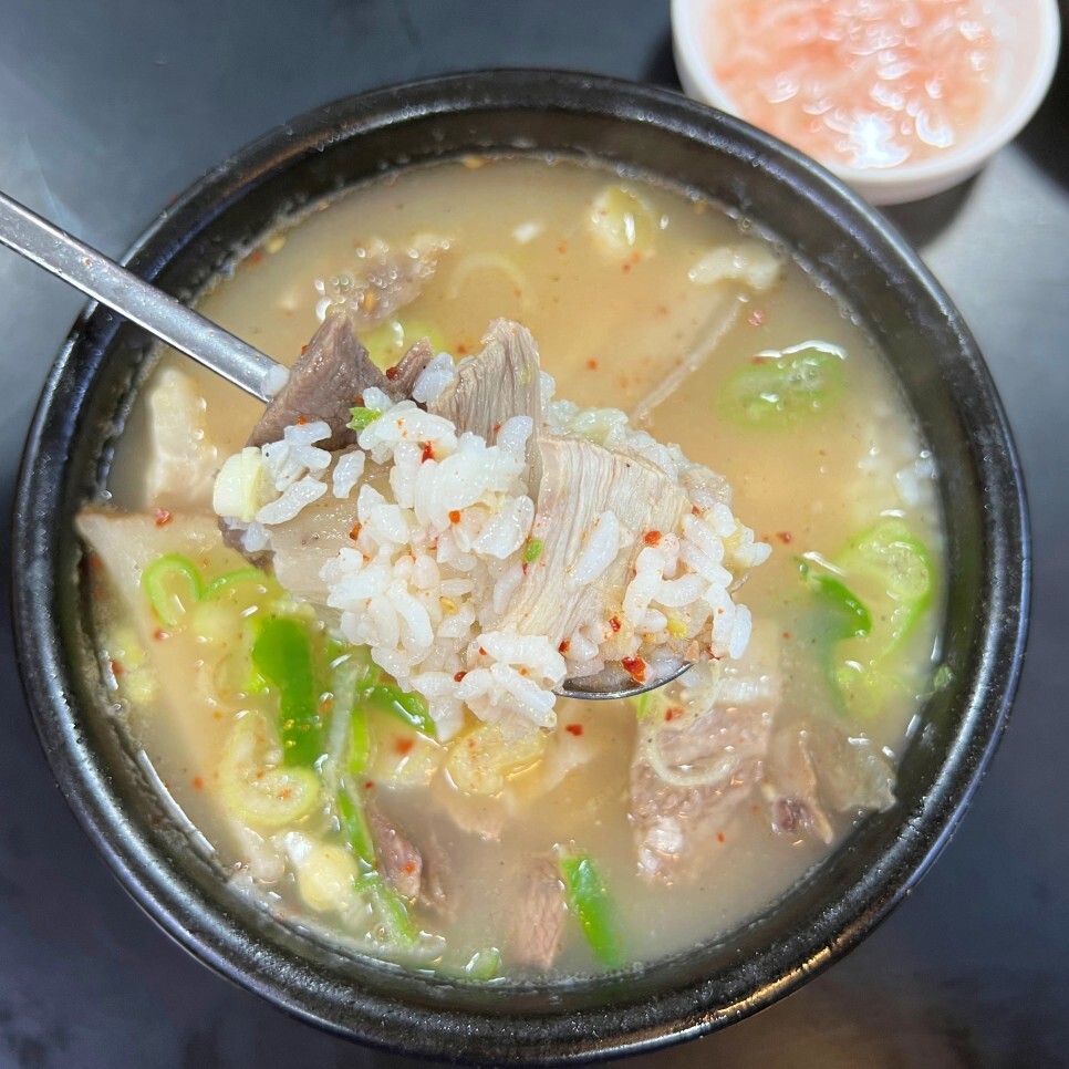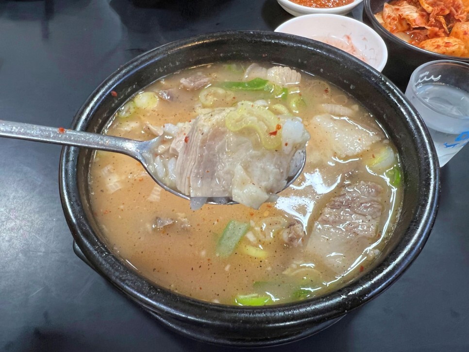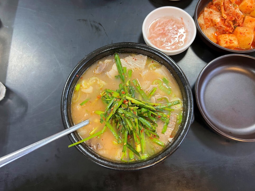 솥에 불이 꺼지지 않고 24시간 운영되는 집이라 그런지 어느 시간대에 방문해도 고기가 상당히 부드럽습니다. 기본 돼지국밥은 여러 부위가 제공되는데 취향에 따라 내장국밥, 머리국밥, 순대국밥, 살코기국밥, 섞어국밥 등으로 주문할 수 있으니 좋습니다.