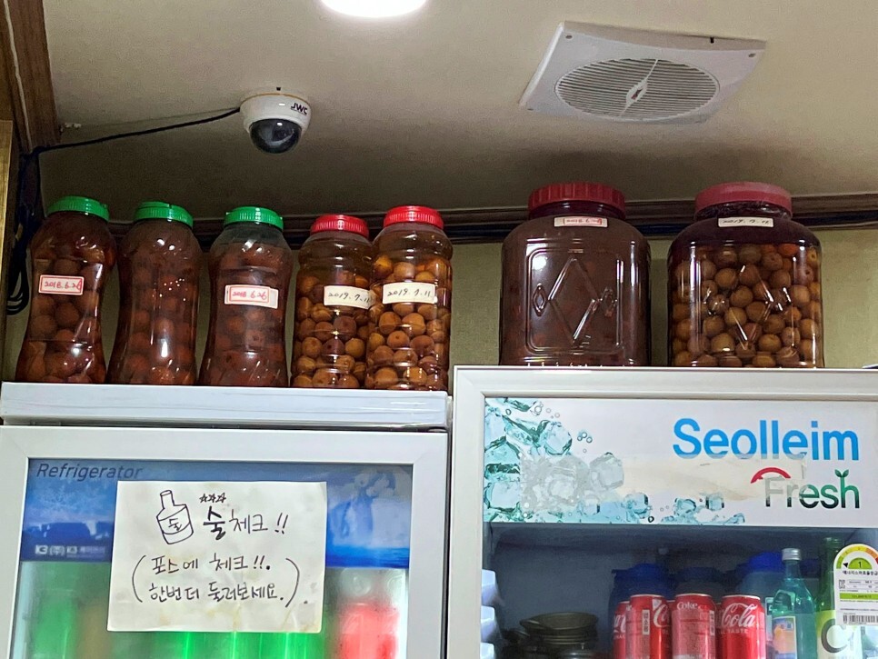 문득 쇼케이스 냉장고 위를 바라보니 담은지 3년이 지난 매실주가 보입니다. 오래간만에 보는 담금주가 반갑습니다.