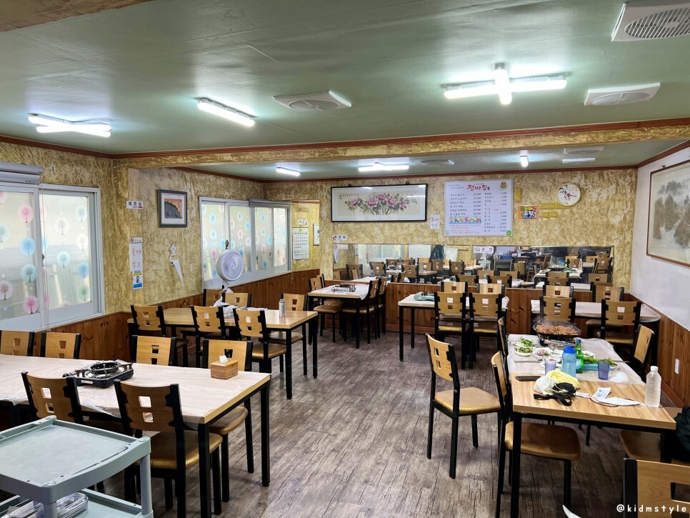 예전에는 신발 벗고 입장하며 좌식이었는데 몇 년 전에 입식으로 바뀌었다. 테이블도 10개 넘게 있어서 단체 손님 입장이 가능하다. 여기서 회식도 많이 하더라.