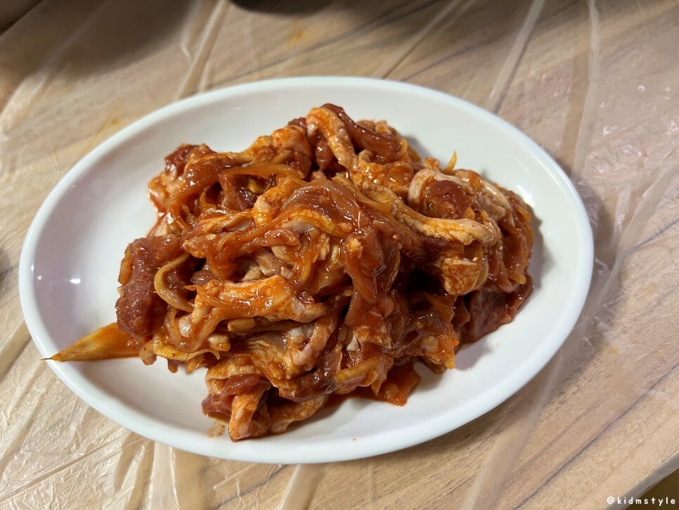 둘 다 배가 고팠다. 불고기 반 마리를 추가해 본다. 양념이 참 잘 배어있다.