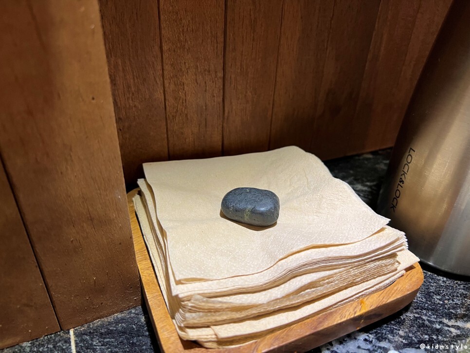 냅킨 위에 조약돌을 올려놓은 것은 여전하다.