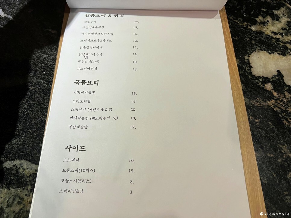 소란에서 스이오니로 바뀌고 첫 방문이라 메뉴판을 찍어본다. 올해 4월에 방문한 기록이라 가격의 변동이 있을 수 있으니 참고하기 바란다.
