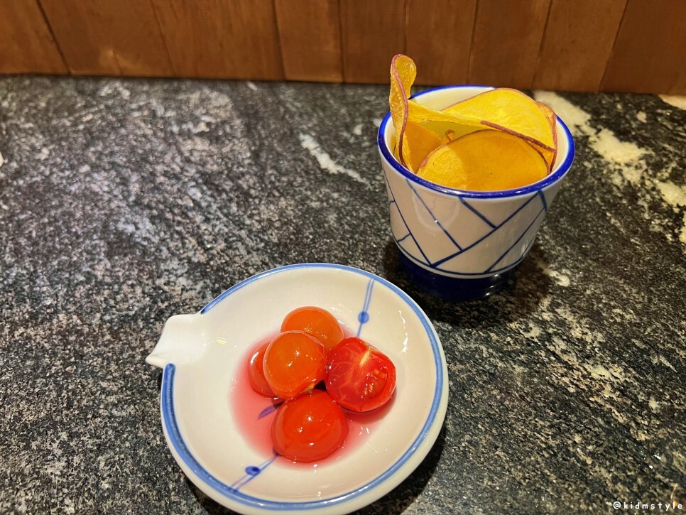 고구마칩과 방울토마토절임이 나오는데 달달한 게 참 맛있더라. 몇 번 리필했다.