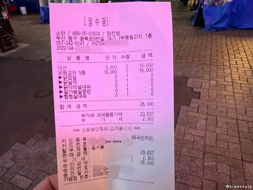 4월 어느 날 방문, 내 돈 내산 영수증이다.