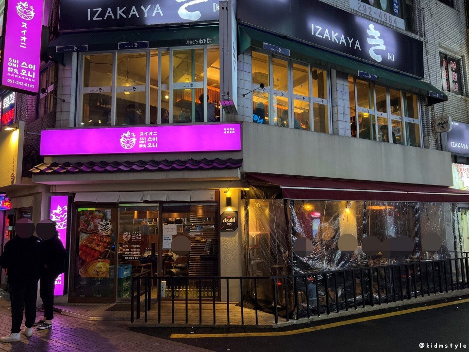 보라색 간판이 인상적이다. 스이오니라는 뜻이 궁금해서 찾아보니 술 취한 도깨비라는 뜻이란다. 자세히 보니 귀여운 도깨비 그림이 반긴다.