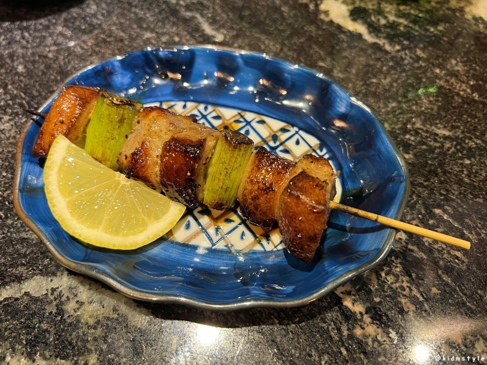 마지막으로 나온 항정살대파 꼬치이다. 레몬도 한 조각 같이 나온다. 이것도 꽤 맛있더라. 두툼한 항정살이 겉바속촉을 제대로 느끼게 해준다. 레몬즙을 살짝 뿌리니 상큼함이 느껴져서 좋고.