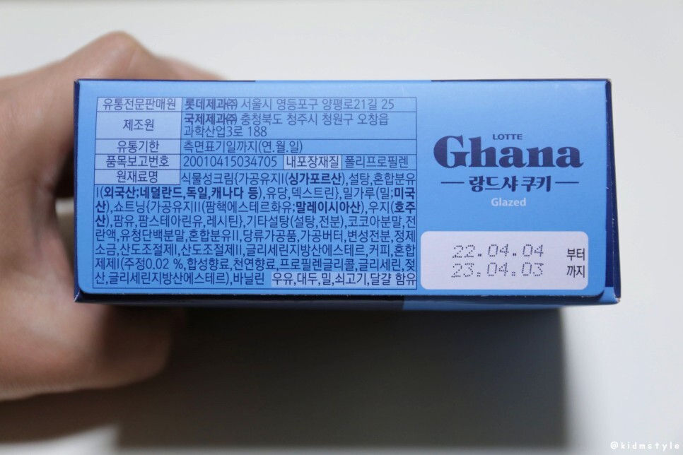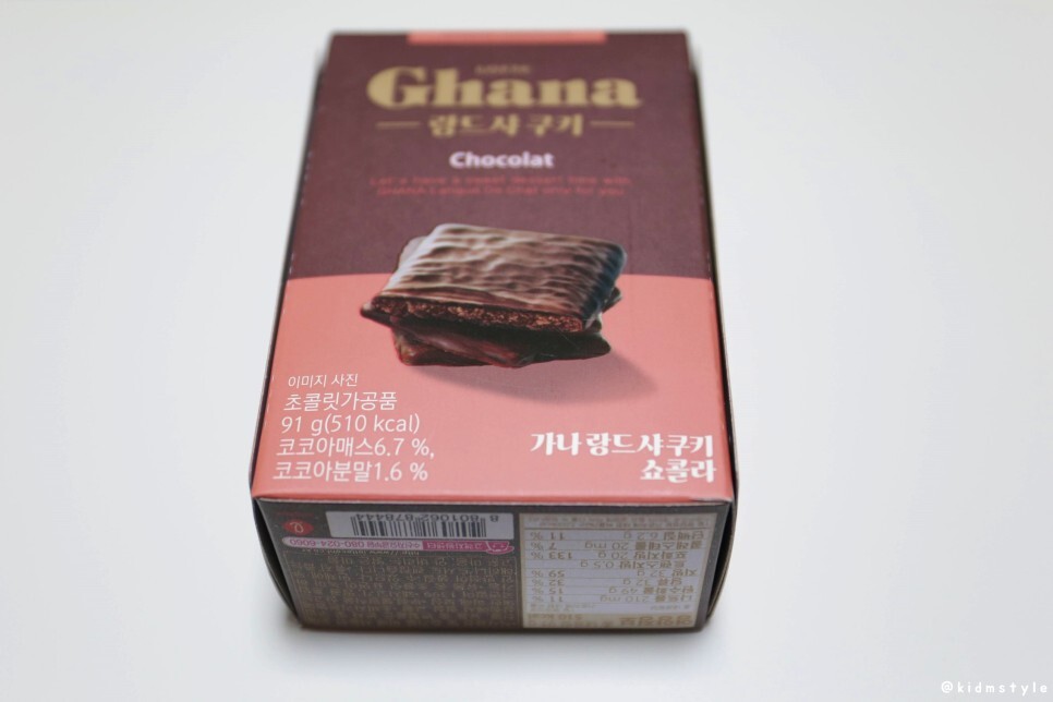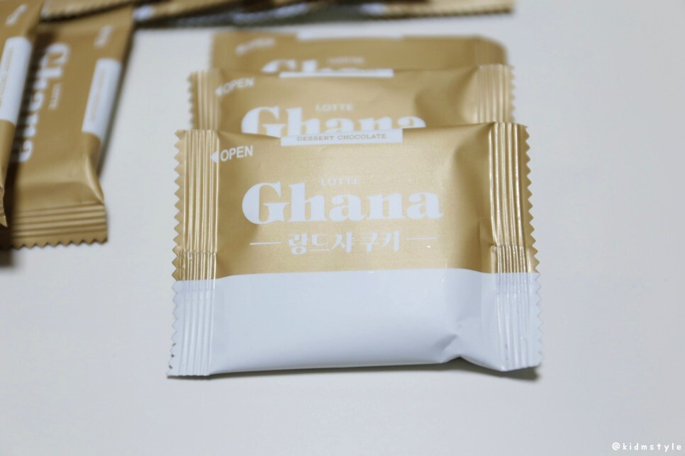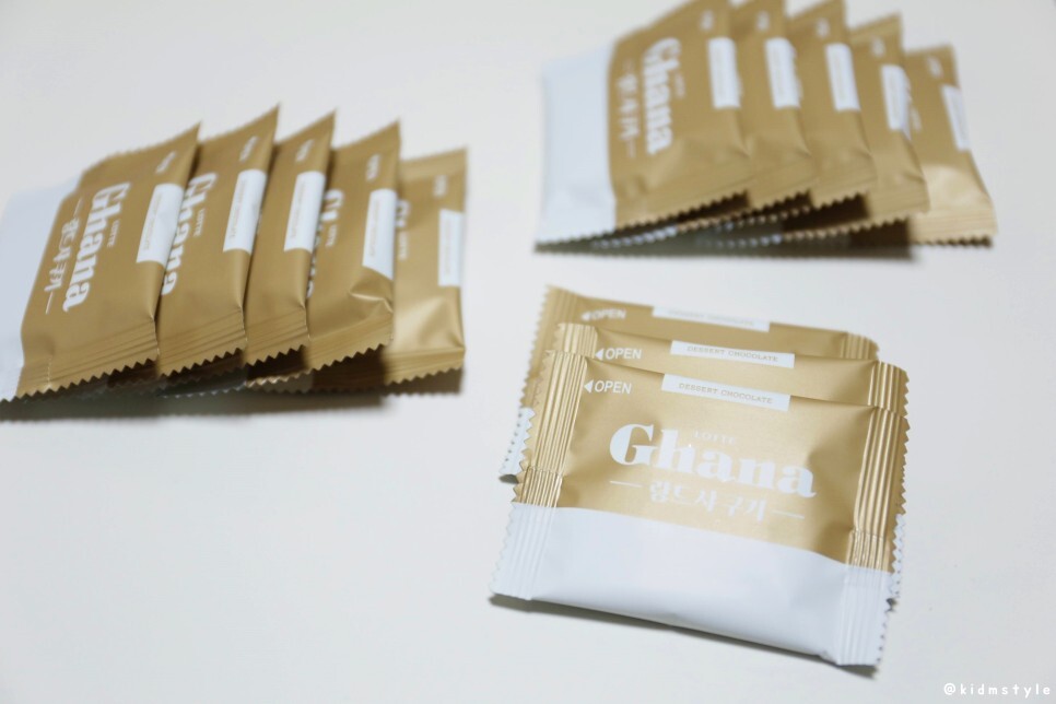 몇 년 전 출시 초반에 우연히 팀 동료가 사 온 것을 맛봤는데 너무 내 스타일이라 그 뒤로 가끔 생각날 때마다 사 먹는 과자이다. 가나 ghana라는 이름을 보니 가나 초콜릿이 생각난다.