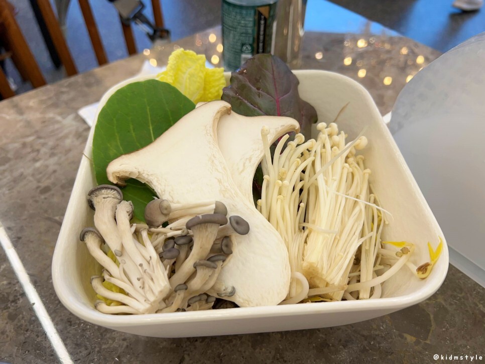 순식간에 조개를 먹어치우고 본격적으로 샤브샤브를 맛볼 시간이다. 버섯도 넣고