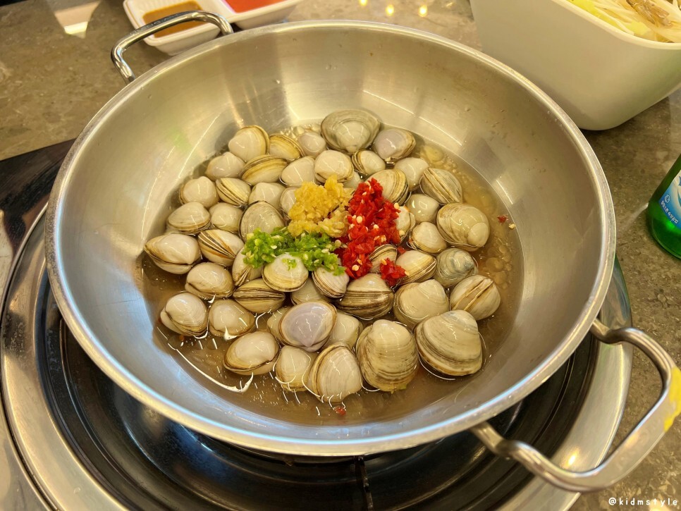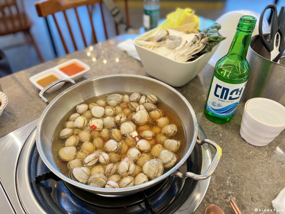 동죽 등장이요~ 일단 동죽 먼저 까먹고 샤브샤브를 만들어 먹으면 된다.