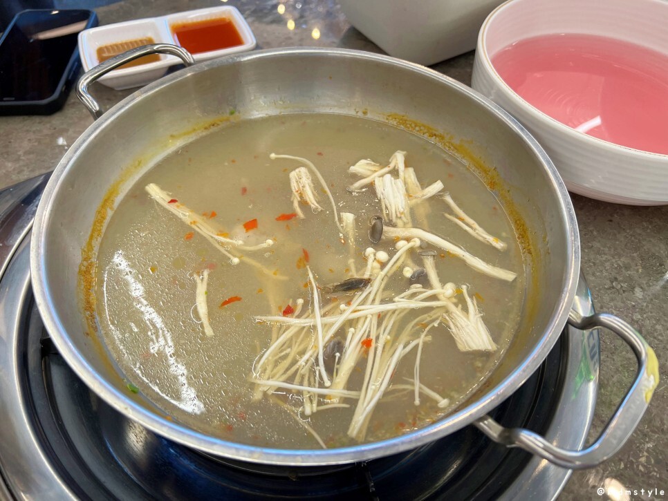 자리를 잡고 찍어본다. 이 집은 상당히 깔끔한 인테리어가 돋보인다. 챠오샤브 caio shabu는 명지 국제 신도시 쪽에 본점이 있고 여기 다대포 낫개거리에 다대점, 그리고 최근 오픈한 김해 율하 2지구에 율하점이 있다. 율하점도 벌써부터 입소문을 타서 인기가 상당히 많다고 하더라.