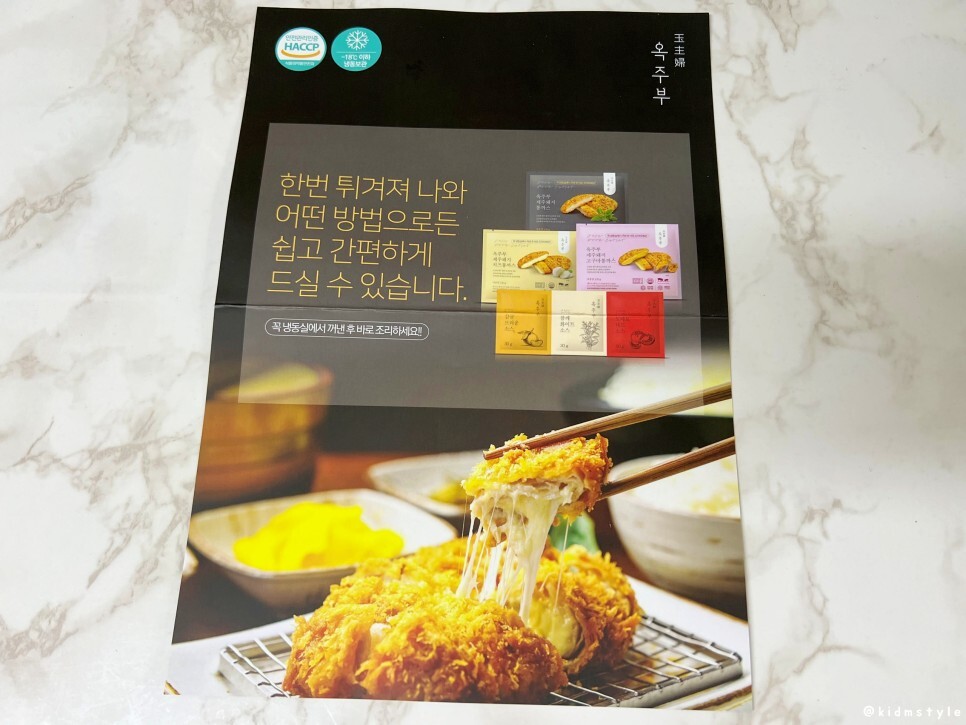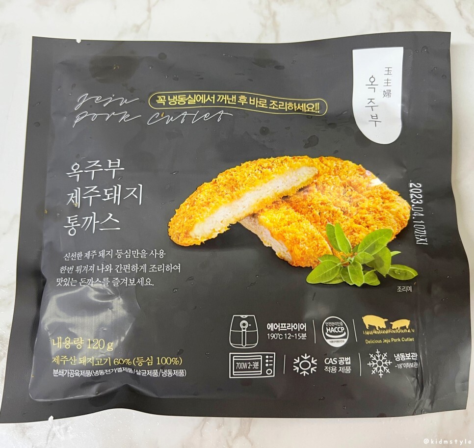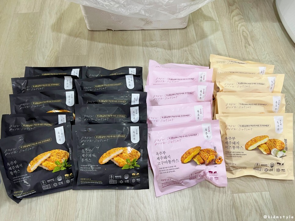 그리고 돈까스가 보인다. 총 20개를 주문했는데 옥주부 제주돼지통까스 10개, 옥주부 제주돼지고구마통까스 5개, 옥주부 제주돼지치즈통까스 5개의 구성이다. 다양한 조합으로 주문할 수가 있다.