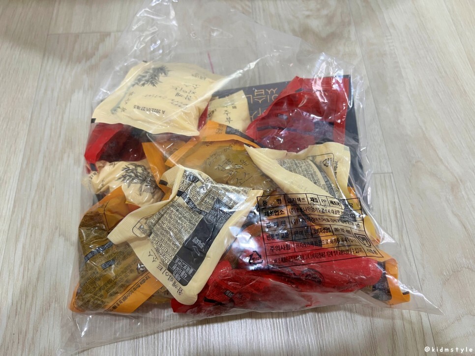 먼저 소스가 가득 들어가 있는 봉지가 나온다.