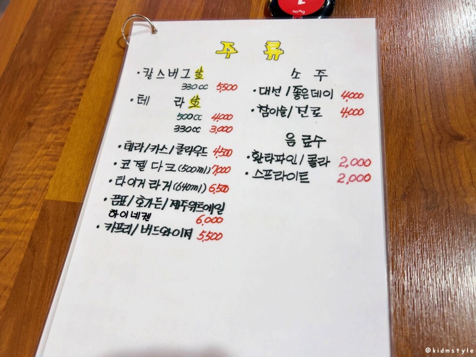 메뉴판을 살펴보자. 먼저 술 종류이다. 4월에 방문한 기록이라 가격이 올랐을 수도 있다.