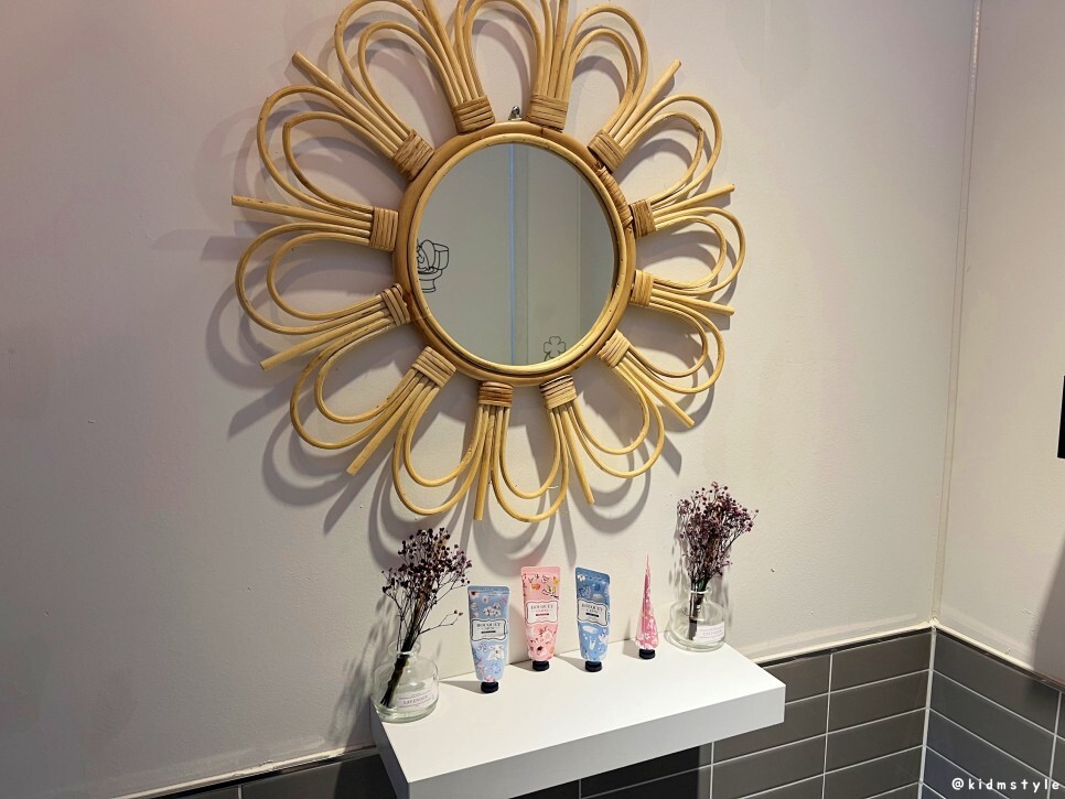 한쪽에는 거울도 있고 핸드크림도 여러 개 놓여있다. 아기자기함이 엿보인다.