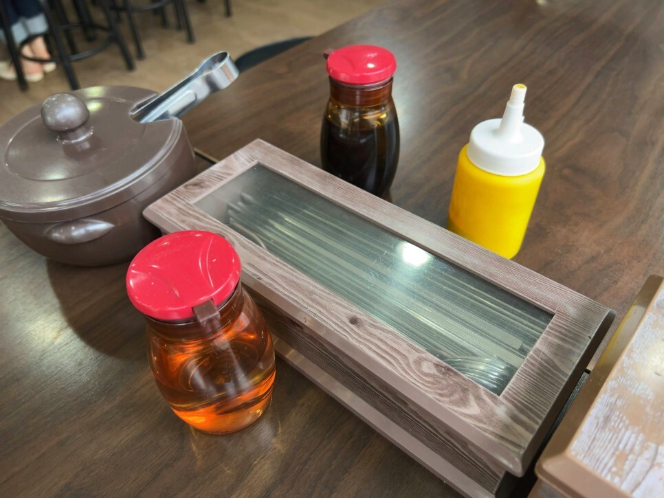 무김치, 식초, 겨자 등 소스가 비치되어 있으니 원하는 만큼 맛보면 된다.