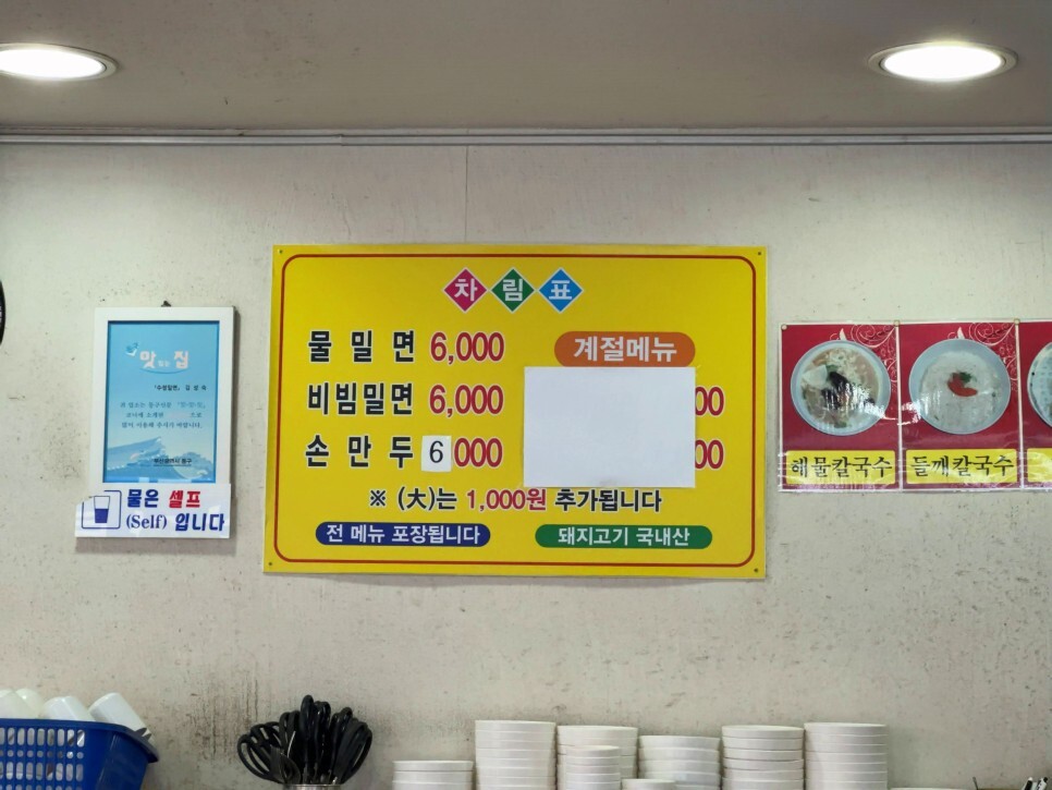 보기만 해도 든든한 주전자 아닌가! 밀면 값 비싸게 받으면서 온육수는 비빔에만 제공된다고 절대 안 내주는 그런 집은 생각만 해도 별로다.
