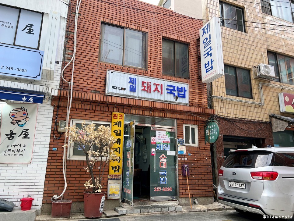 동아대 부민캠 학생들이라면 모를 수 없는 곳이다. 나는 동아대생도 아닌데 어찌 알까? 오래전에 이곳에 인연이 있어서 부민동, 대신동이 우리 동네처럼 빠삭하다. 제일돼지국밥은 영업한 지 40년 정도 됐고 현 사장님이 운영한지는 15년 정도 되었다. 주차는 가게 앞에 한대 정도 가능한데 보다시피 다른 손님 차가 주차되어 있어서 내 차는 식당 맞은편에 잠깐 댔다. 주말이라 자리가 있네.