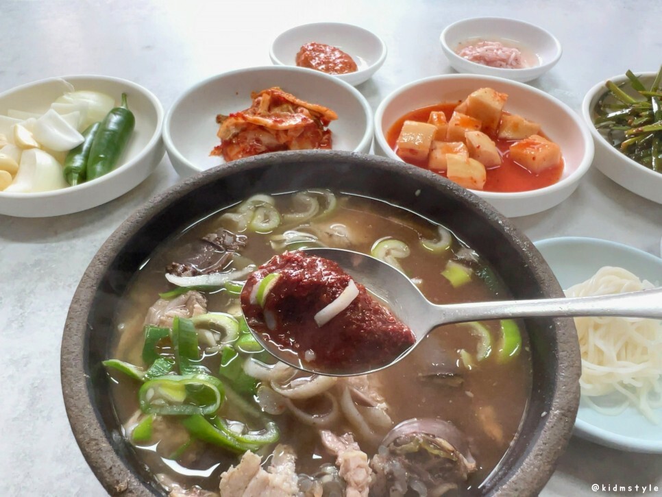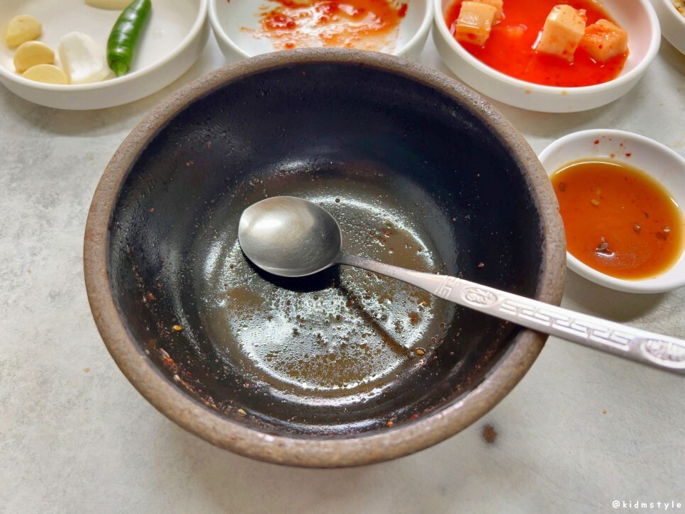 국밥에 꽂혀있는 숟가락을 빼보면 다대기가 이렇게 담아져 있다. 취향껏 덜어내고 조절해가면서 맛봐도 괜찮을 것 같다.