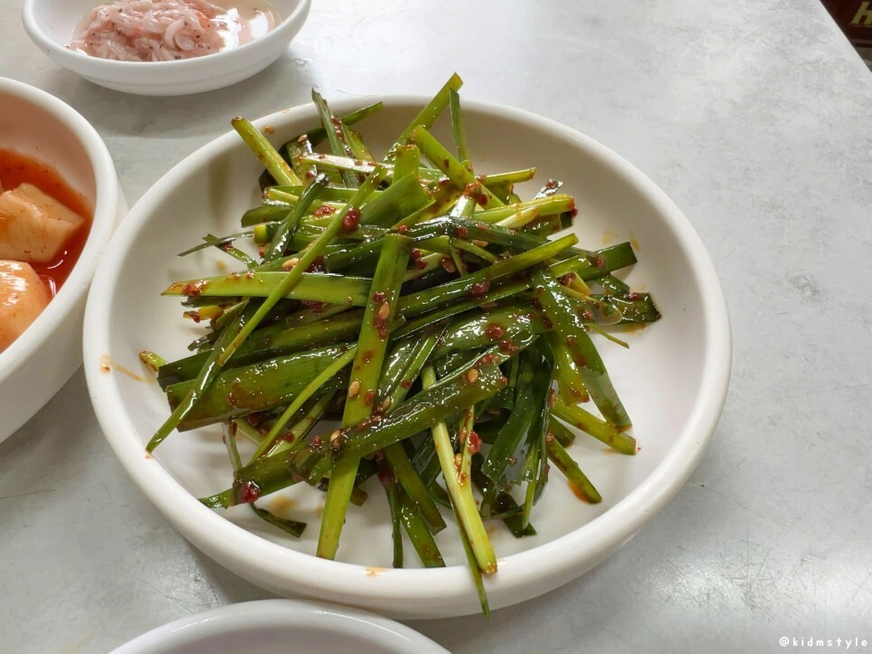 방금 무친듯한 부추는 입맛 돋우기에 충분하다. 국밥에 넣어 먹어도 되고 반찬으로 먹어도 된다. 참고로 김치와 깍두기 역시 직접 담은 거라 상당히 맛있다.