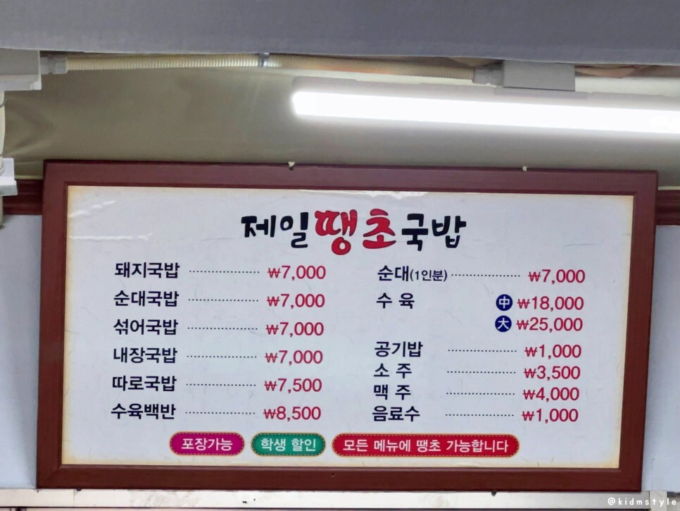 4월에 방문한 기록이라 가격 변동이 있을 수 있으니 참고하기 바란다. 이 집은 땡초국밥으로 유명한데 이날은 순대국밥이 너무 땡겨서 순대국밥을 주문해 본다. 학생 할인도 있고 맛있어서 동아대 학생들한테 인기가 많다.
