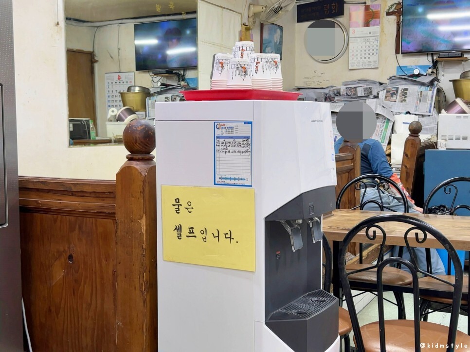 물은 셀프. 더워서 땀이 흐르길래 시원한 물을 연거푸 2잔 마시니 조금 낫다.