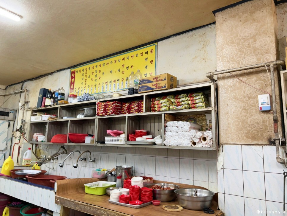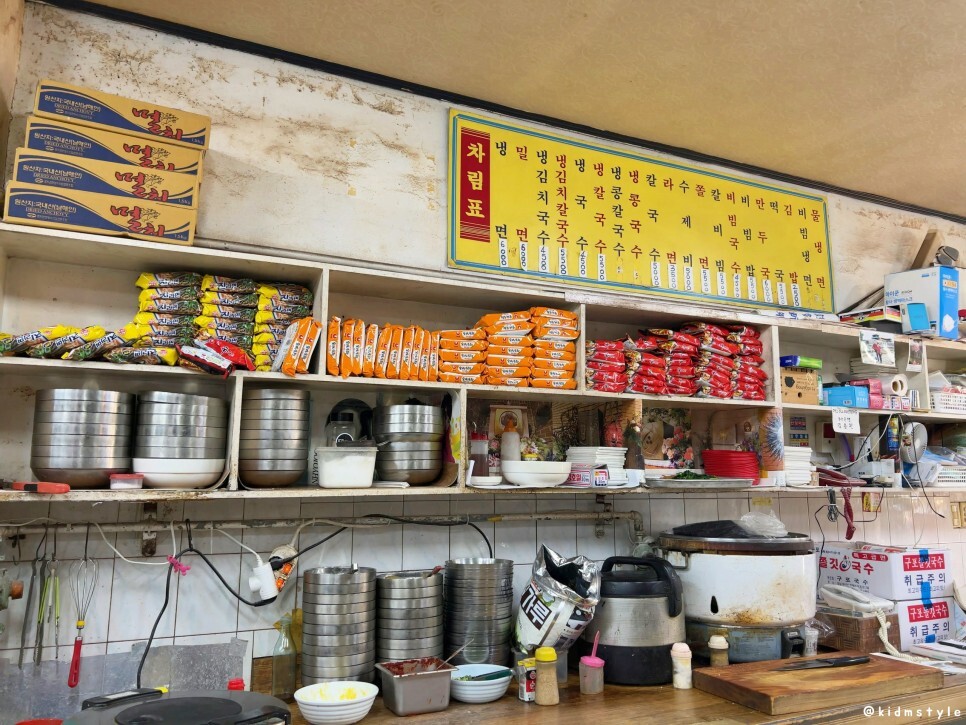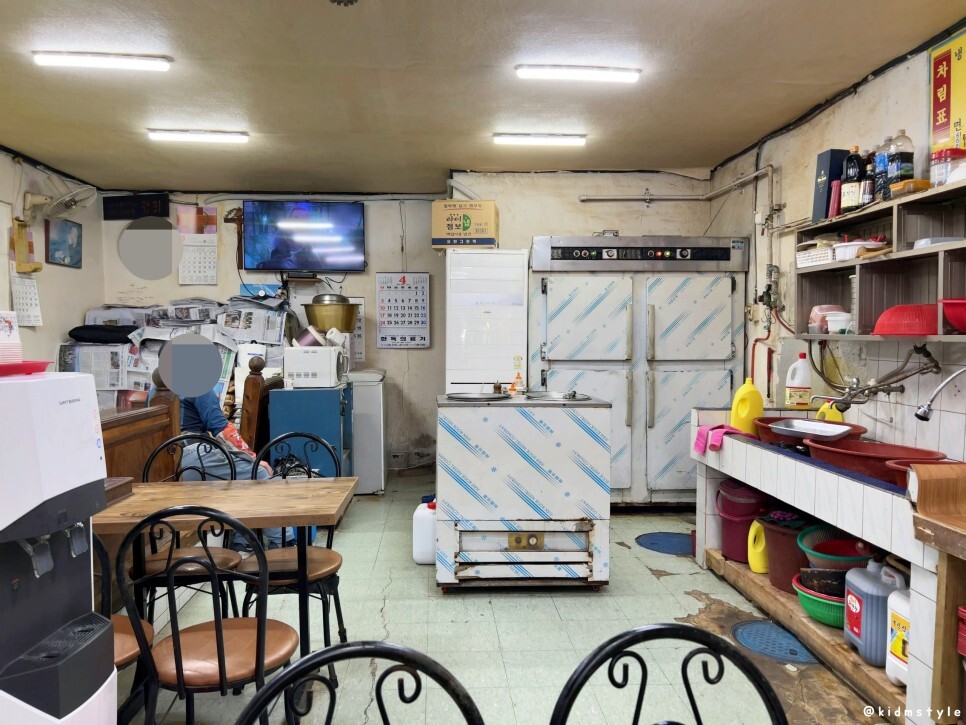언제 봐도 정겨운 솥, 그리고 화구들이다. 주문과 동시에 팔팔 끓이기 시작한다. 벽에 적혀있는 메뉴를 보면 오랜 시간 영업해 온 식당이라는 것을 알 수 있다. 식당에서 먹는 손님도 많지만 주위 상가에서 주문하여 배달 물량을 상당히 많이 쳐내는 모습이다. 사장님의 배달용 자전거에 꽃을 달고 다녀서 일대에서 유명인으로 통한다.
