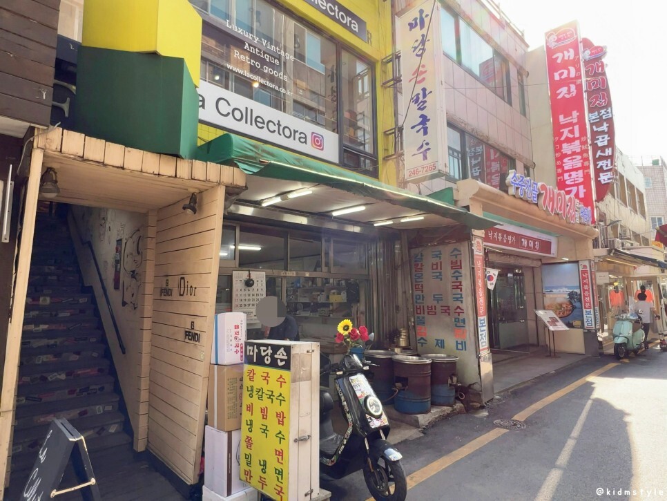 화창한 봄날의 기운을 만끽하면서 국제시장을 걸어서 마당손칼국수에 도착을 했다. 이쪽에 보세 옷가게가 참 많은데 예전에 깔롱 지기고 다닐 때 참 자주 드나들었던 기억이 난다. 키드엠이라는 닉네임 이전에 사용하던 닉네임이 '쓰따일e빵쓰'였다. 스타일 이빠이라는 뜻이었다.