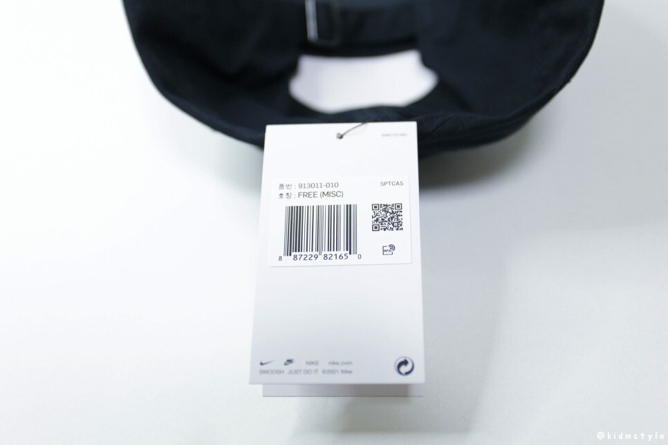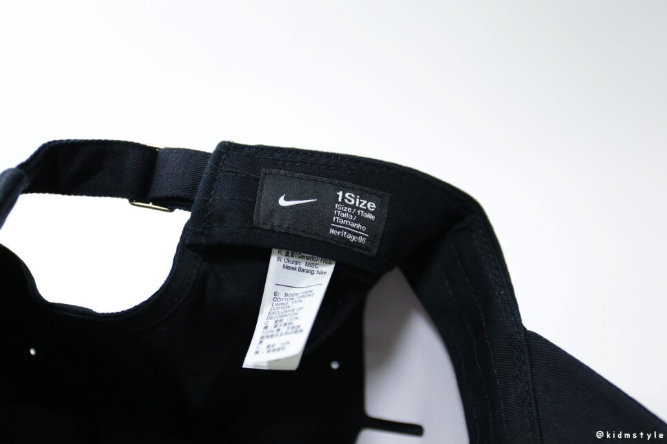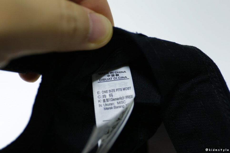 모자 안쪽에는 1size 표기와 함께 세탁 탭이 달려있다.