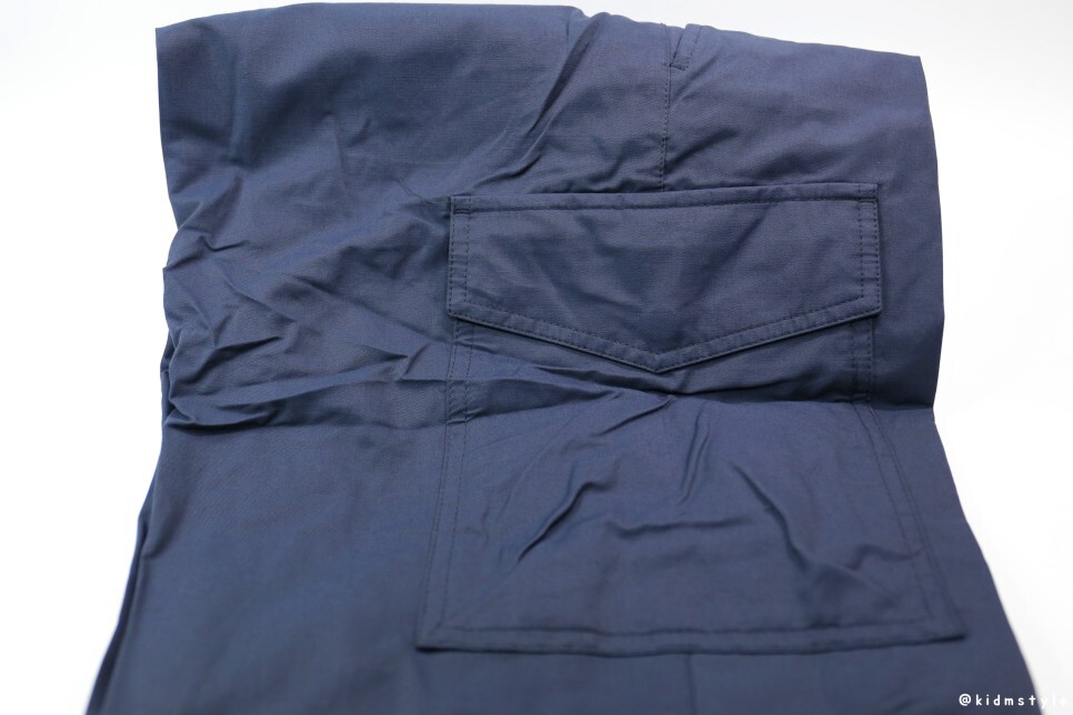 바지 양쪽 옆에 주머니가 달려있다. 이 제품의 단점이 하나 있는데 사진으로 보다시피 구김이 있는 편이다. 세탁 후 꺼내보면 구김이 좀 있더라. 그리고 잔 먼지가 좀 붙는 편이다.
