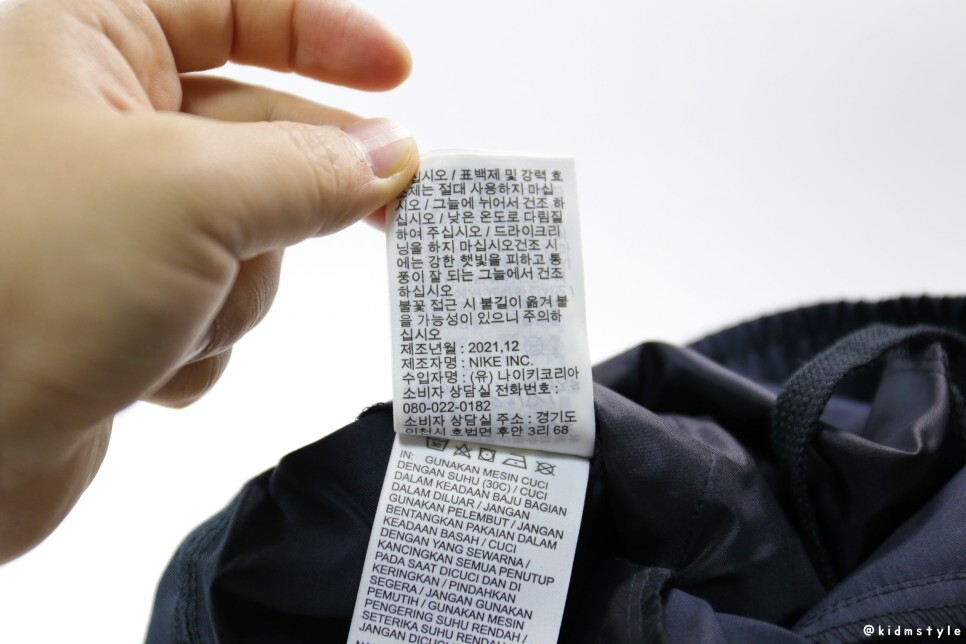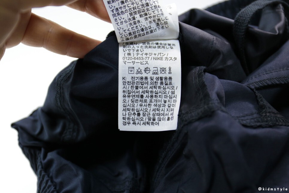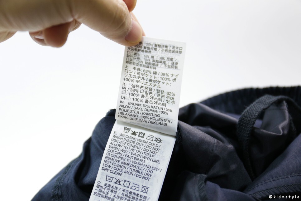 바지 안쪽에는 사이즈 탭, 세탁 탭이 따로 달려 있다.