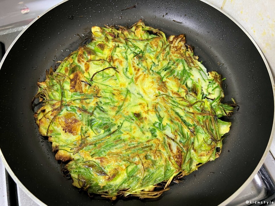 부추라는 재료가 몸에 참 좋다. 그리고 나는 부추를 좋아한다. 엄마가 가끔 만들어 주시는 부추김치도 아주 좋아하고 돼지국밥을 먹으러 가도 늘 부추를 양껏 올려서 맛본다. 오늘 만들어 본 부추전 역시 너무 맛있다. 비가 오면 생각나는 정구지 찌짐이다. 다음에 비가 오면 부추부터 사러 가야겠다.