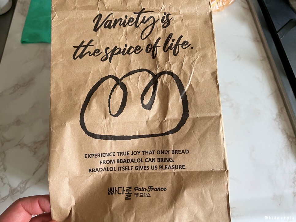 귀여운 빵그림이 그려진 빵 봉투를 들고 사진을 찍어본다. 멀리 대구에서 KTX 기차를 타고 부산으로 넘어온 이 빵은 빠다롤 뺑 프랑스라는 대구 동성로에 있는 빵집에서 구입한 것이다.