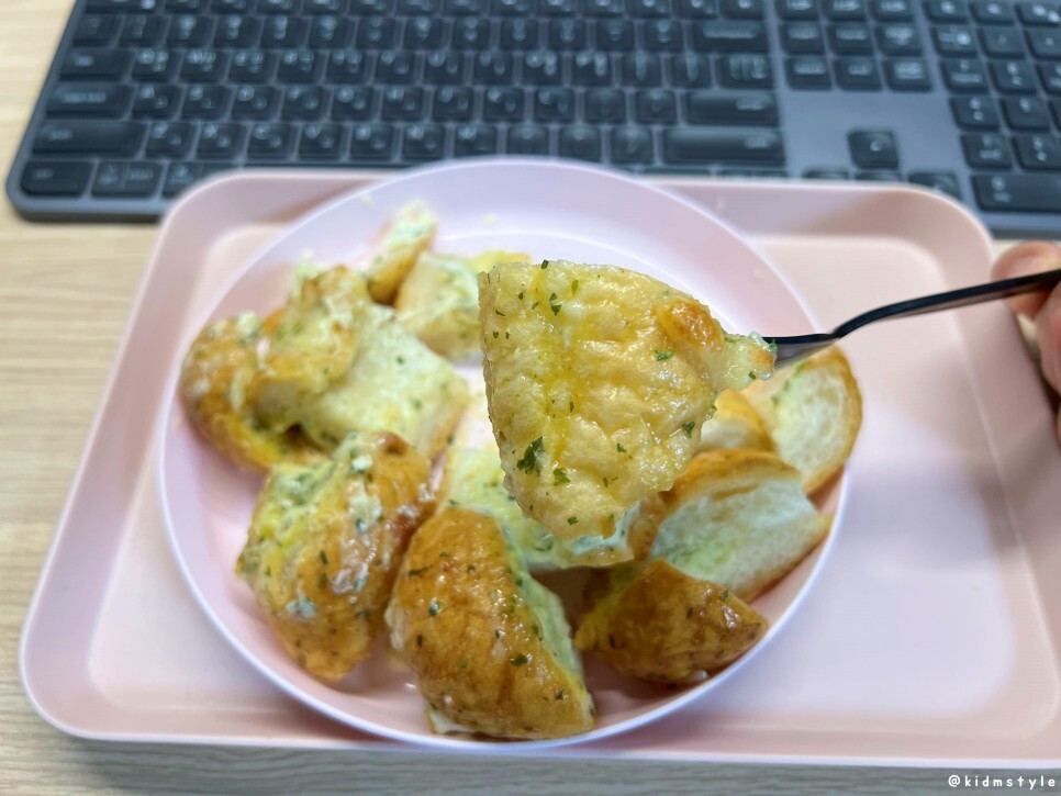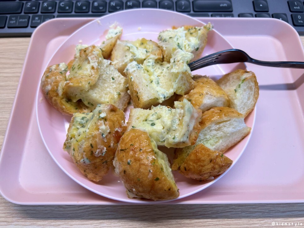 처음 봤을 때 양이 꽤 많아 보였는데 한자리에서 마늘 바게트 하나를 다 먹었다. 정말 맛있게 먹었다. 선물해 준 이에게도 감사의 마음을 전한다.