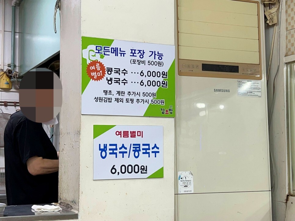 모든 메뉴는 포장이 가능하고요. 여름 별미로 냉국수와 콩국수도 맛볼 수 있네요.